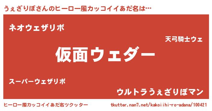 | 伝説のあだ名 | 『古文書に記された勇者うぇざりぼ』 |