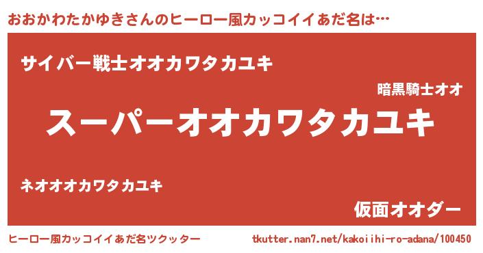 おおかわたかゆきさんのヒーロー風カッコイイあだ名をツクッター!