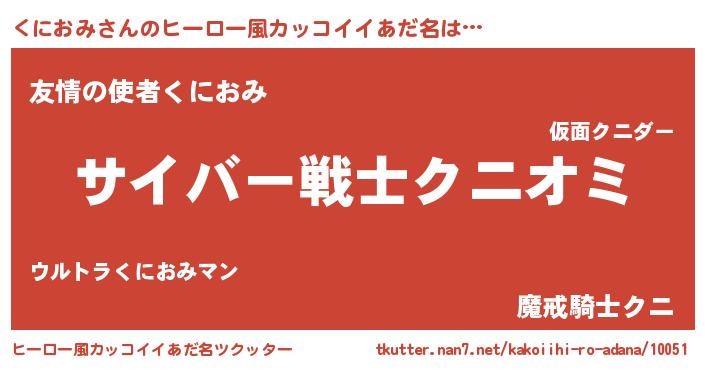 | 男性向けラノベタイトル風あだ名 | 『転生したらくにおみだった件』 |