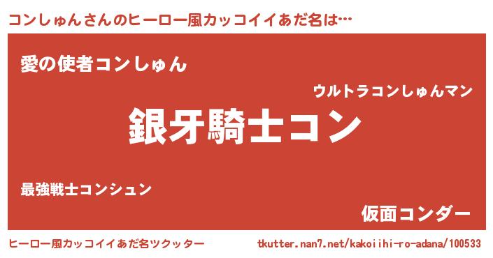 | 男性向けラノベタイトル風あだ名 | 『はたらくコンしゅんさま!』 |