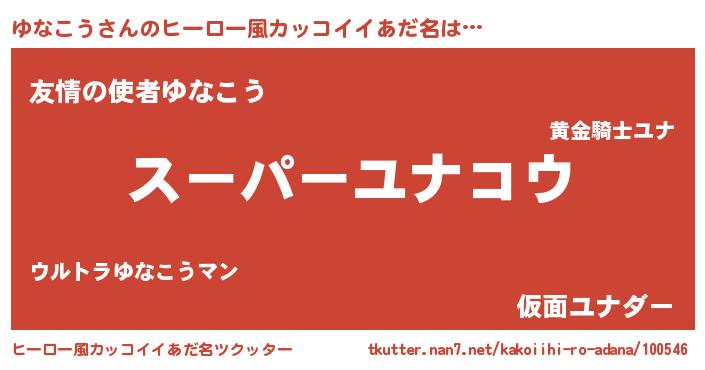 ゆなこうさんのヒーロー風カッコイイあだ名をツクッター!
