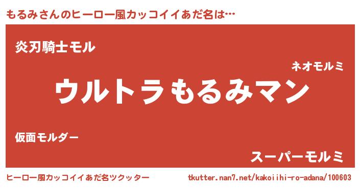 | 肩書あだ名 | 『もるみ総理大臣』『もるみ中将』 |