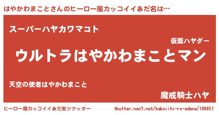 | 伝説のあだ名 | 『秘められし陰陽師はやかわまこと』 |