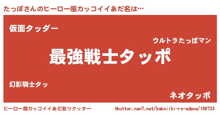 | 男性向けラノベタイトル風あだ名 | 『Re:たっぽから始める異世界生活』 |