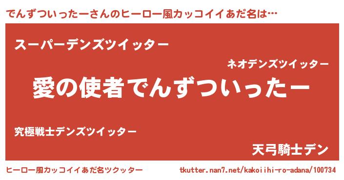 | 男性向けラノベタイトル風あだ名 | 『はたらくでんずついったーさま!』 |