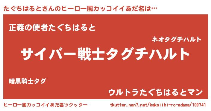 | 男性向けラノベタイトル風あだ名 | 『Re:たぐちはるとから始める異世界生活』 |