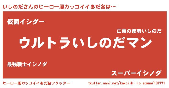 | 男性向けラノベタイトル風あだ名 | 『いしのだに滅ぼされるだけの簡単なお仕事です』 |