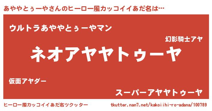 | 女子向けラノベタイトル風あだ名 | 『異世界で失敗しない100のあややとぅーや』 |