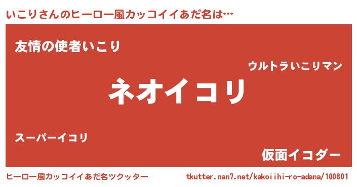 | 男性向けラノベタイトル風あだ名 | 『いこりに滅ぼされるだけの簡単なお仕事です』 |
