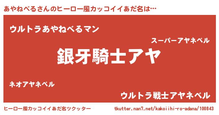 | 男性向けラノベタイトル風あだ名 | 『あやねべるの嫁は女の子じゃないと思った?』 |