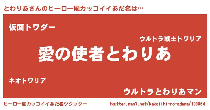 | 女子向けラノベタイトル風あだ名 | 『とわりあ恋絵巻』『とわりあの婚約者』 |