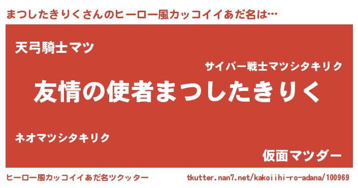 | 男性向けラノベタイトル風あだ名 | 『マツシタキリクスレイヤー』 |