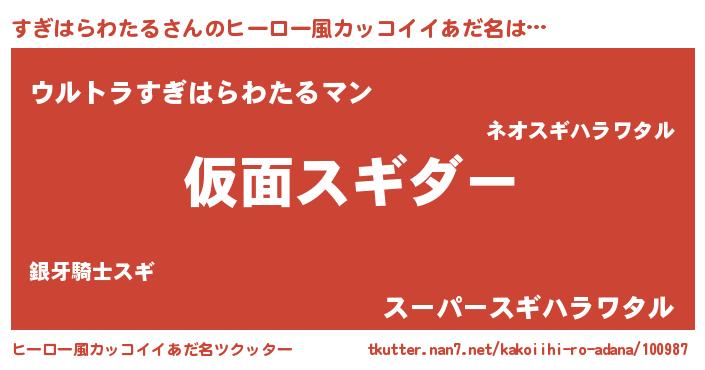 | 胡散臭い通販商品みたいなあだ名 | 『あなたにだけ特別に提供する世界で10本だけ現存している希少なブランデー…その名も「すぎはらわたる」』 |