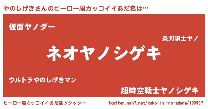 やのしげきさんのヒーロー風カッコイイあだ名をツクッター!