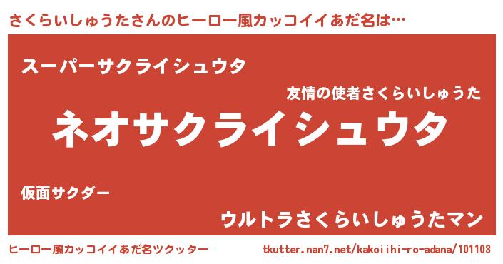 | 意味不明あだ名 | 『永久保存さくらいしゅうた』 |