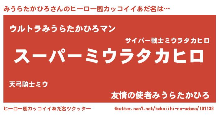 | 男性向けラノベタイトル風あだ名 | 『みうらたかひろに滅ぼされるだけの簡単なお仕事です』 |