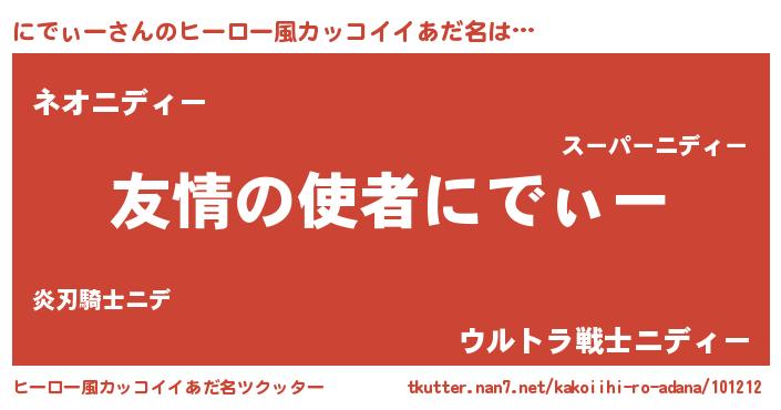 | ヘコむあだ名 | 『にでぃー(笑)』『にでっふぃ~』 |