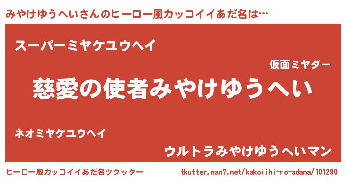 | ヘコむあだ名 | 『みやっふぃ~』『豆乳』『みやっぺ』 |