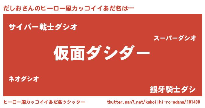 | 男性向けラノベタイトル風あだ名 | 『魔弾の王とだしお』『緋弾のダシオ』 |