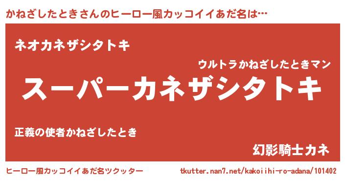 | 胡散臭い通販商品みたいなあだ名 | 『億万長者になれる霊験あらたかなお札…その名も「かねざしたとき」』 |