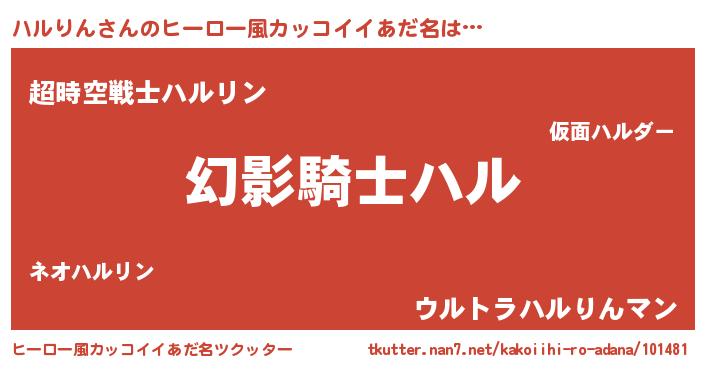 | 男性向けラノベタイトル風あだ名 | 『ハルりんの嫁は女の子じゃないと思った?』 |