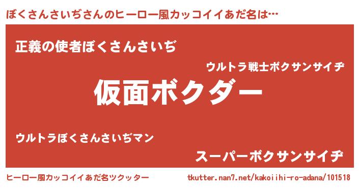 | 男性向けラノベタイトル風あだ名 | 『この素晴らしい世界にぼくさんさいぢを!』 |