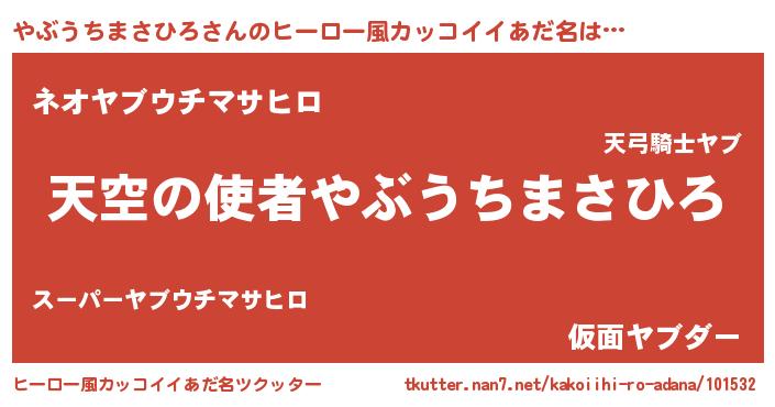 | 男性向けラノベタイトル風あだ名 | 『やぶうちまさひろ~年齢イコール彼女いない歴の魔法使い~』 |