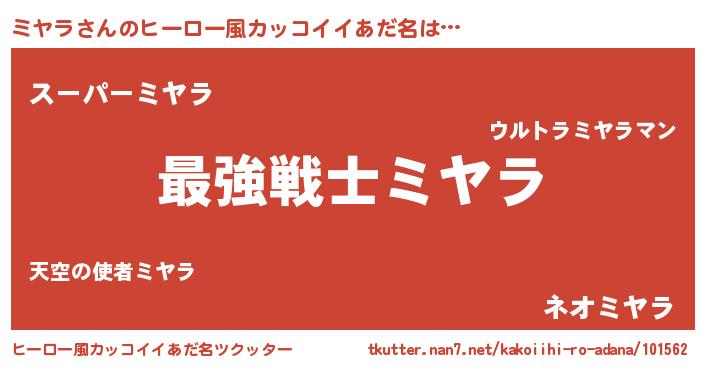 | 男性向けラノベタイトル風あだ名 | 『ミヤラに滅ぼされるだけの簡単なお仕事です』 |
