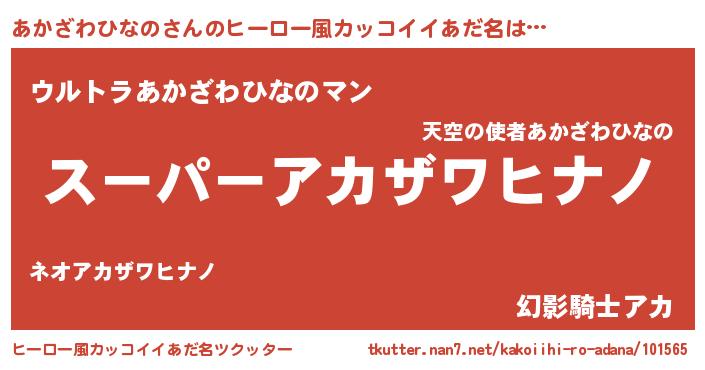 | 女子向けラノベタイトル風あだ名 | 『(仮)あかざわひなののやんごとなき事情』 |