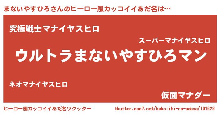 | 男性向けラノベタイトル風あだ名 | 『やはりまないやすひろの青春ラブコメはまちがっている 』 |