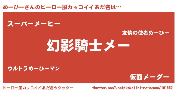 | 男性向けラノベタイトル風あだ名 | 『めーひーの嫁は女の子じゃないと思った?』 |