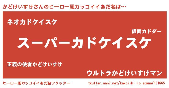 | 男性向けラノベタイトル風あだ名 | 『かどけいすけの憂鬱』 |
