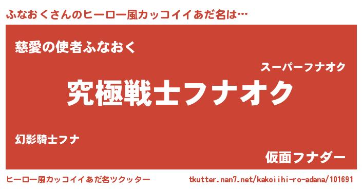 | 男性向けラノベタイトル風あだ名 | 『ふなおくに滅ぼされるだけの簡単なお仕事です』 |