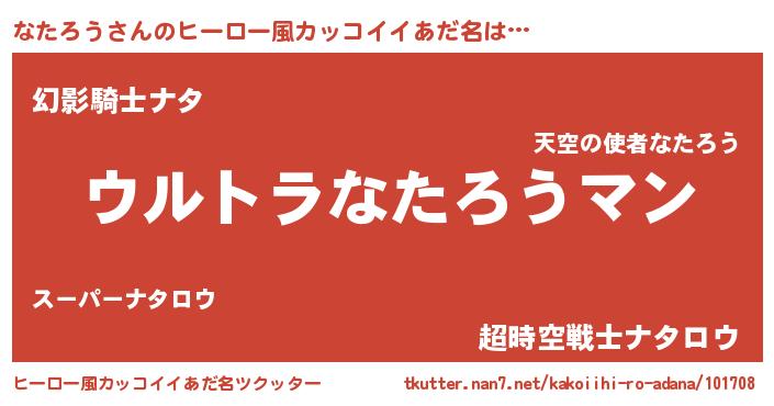 | 男性向けラノベタイトル風あだ名 | 『緋弾のナタロウ』 |
