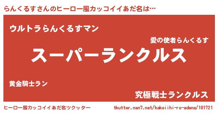 | 男性向けラノベタイトル風あだ名 | 『ランクルスアートオンライン』 |