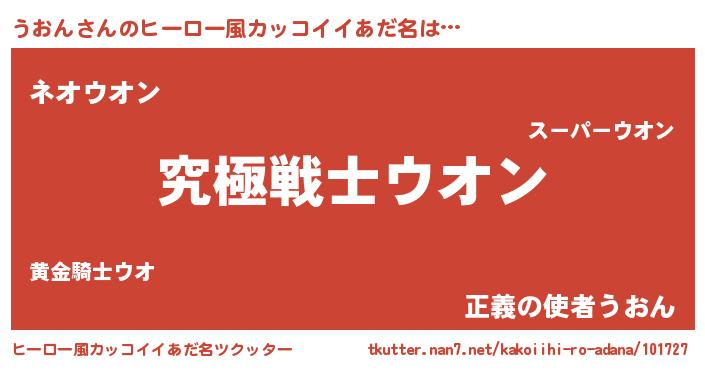 | 意味不明あだ名 | 『自称うおん』『なめこ科うおん属』 |