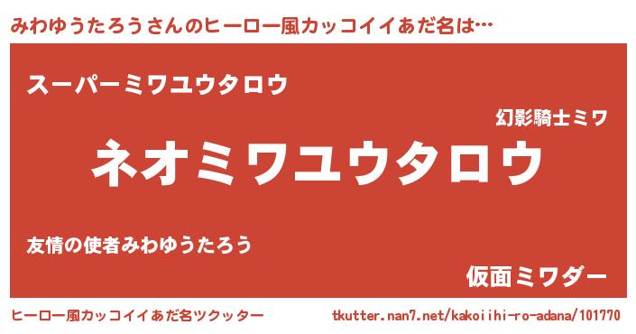 | ヘコむあだ名 | 『みわゆうたろう(苦笑)』『みわにゅー』 |