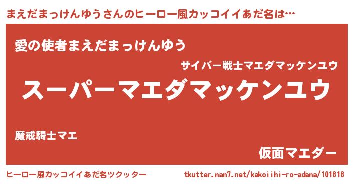 | 男性向けラノベタイトル風あだ名 | 『まえだまっけんゆうの憂鬱』 |