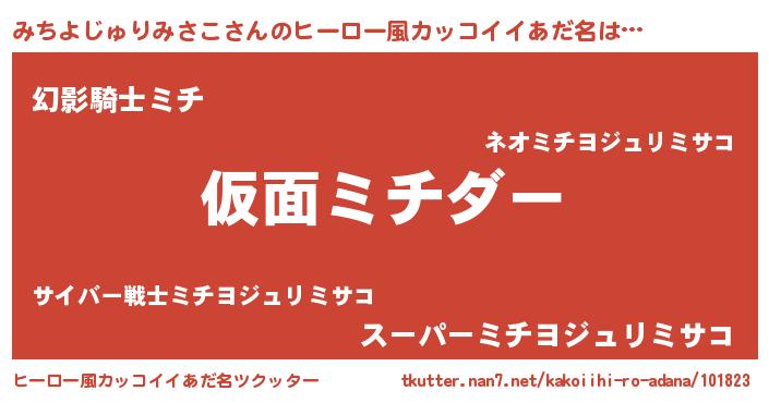 | 意味不明あだ名 | 『住所不定無職みちよじゅりみさこ(62歳)』 |