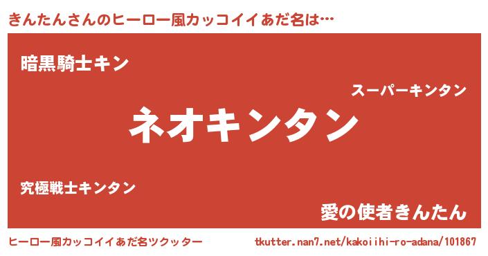 | 男性向けラノベタイトル風あだ名 | 『きんたんという概念が存在しない退屈な世界 』 |
