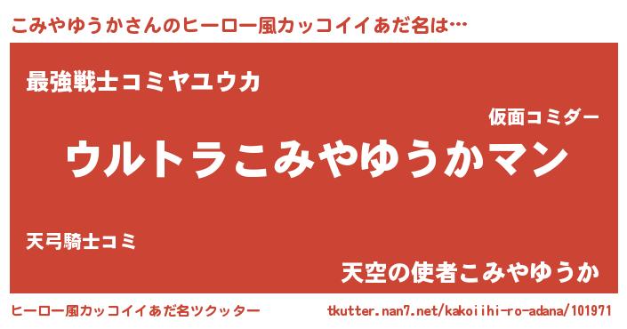 | 男性向けラノベタイトル風あだ名 | 『やはりこみやゆうかの青春ラブコメはまちがっている 』 |