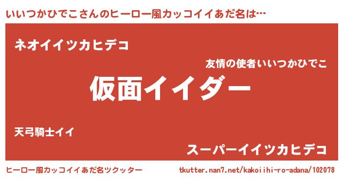 | 男性向けラノベタイトル風あだ名 | 『この素晴らしい世界にいいつかひでこを!』 |