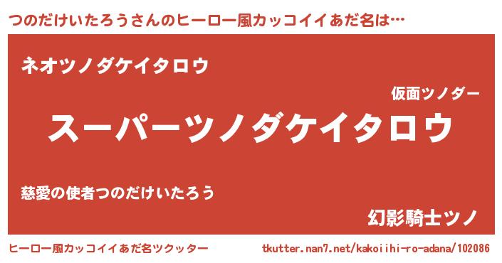 | 男性向けラノベタイトル風あだ名 | 『ツノダケイタロウスレイヤー』 |