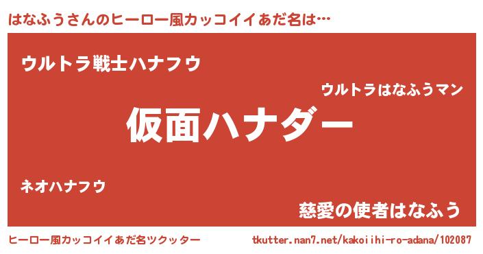 | 男性向けラノベタイトル風あだ名 | 『この素晴らしい世界にはなふうを!』 |