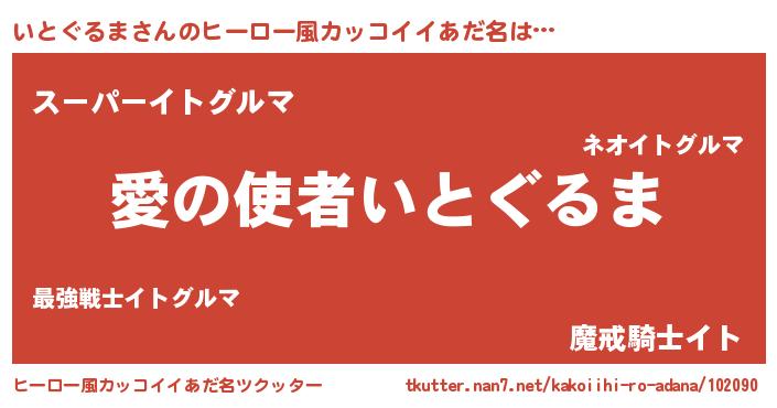 | 男性向けラノベタイトル風あだ名 | 『おまえをオタクにしてやるから、俺をいとぐるまにしてくれ! 』 |