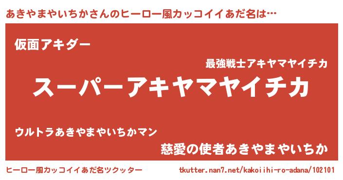 | 男性向けラノベタイトル風あだ名 | 『あきやまやいちかの憂鬱』 |