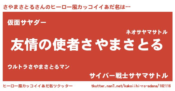 | 男性向けラノベタイトル風あだ名 | 『おまえをオタクにしてやるから、俺をさやまさとるにしてくれ! 』 |