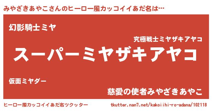 | ポケモン風あだ名 | 『ミヤチュウ』『ヒミヤザキアヤコ』 |