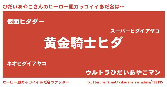 ひだいあやこさんのヒーロー風カッコイイあだ名をツクッター!