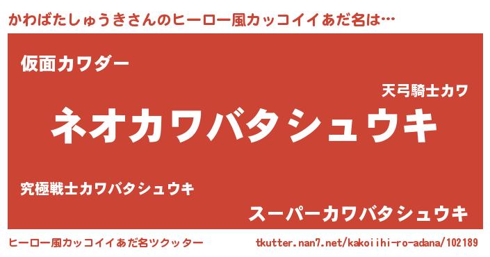 | 男性向けラノベタイトル風あだ名 | 『かわばたしゅうきという概念が存在しない退屈な世界 』 |